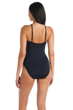 | The halter necktie back mesh one-piece swimsuit from our Don’t Mesh With Me collection has just the right amount of sexy! This plunging neckline accentuates the bust while providing great coverage and support. Perfect for any body type. Features: