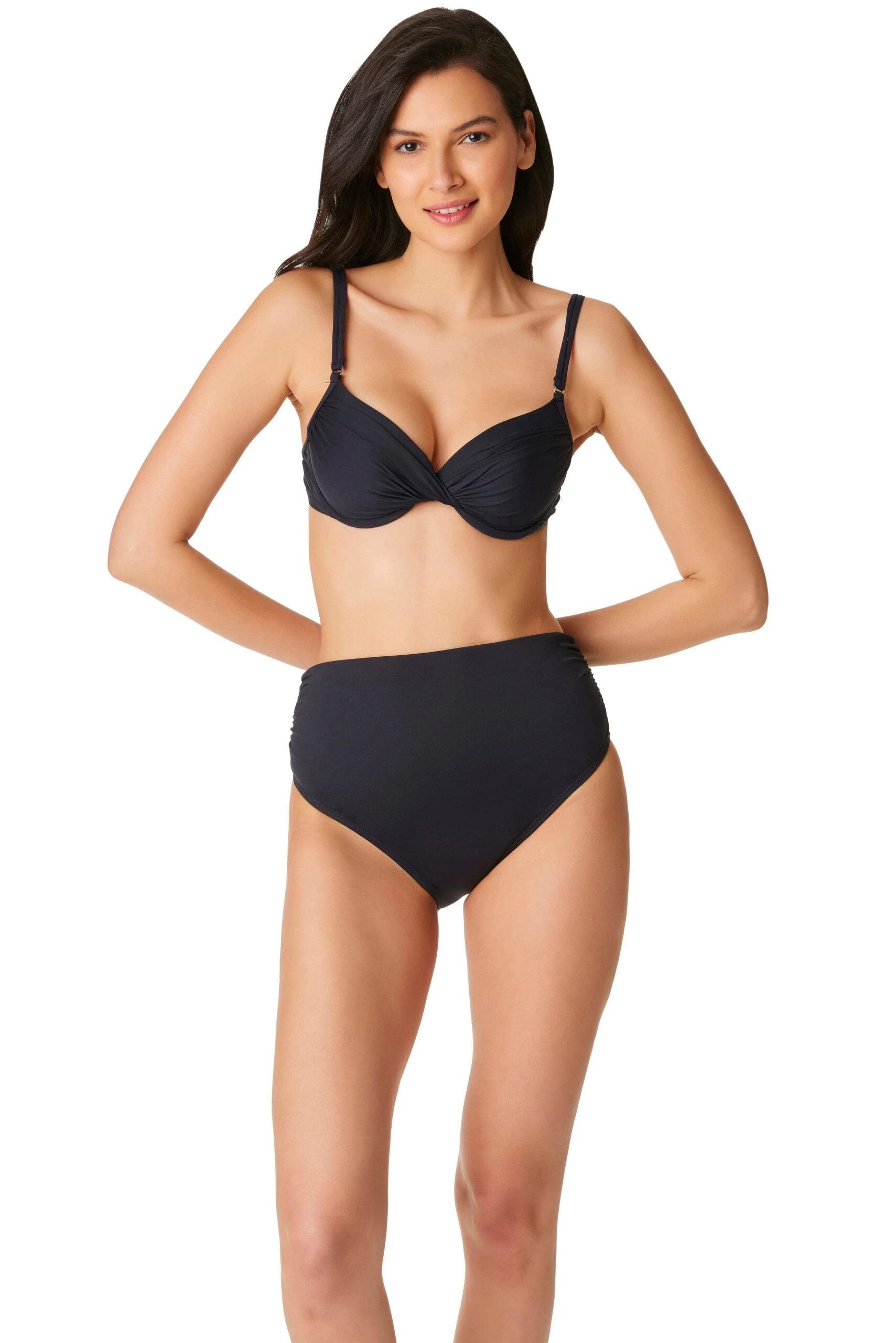 A shirred high-waisted bikini bottom from our Kore collection has a classic look that offers a higher waist with more coverage.