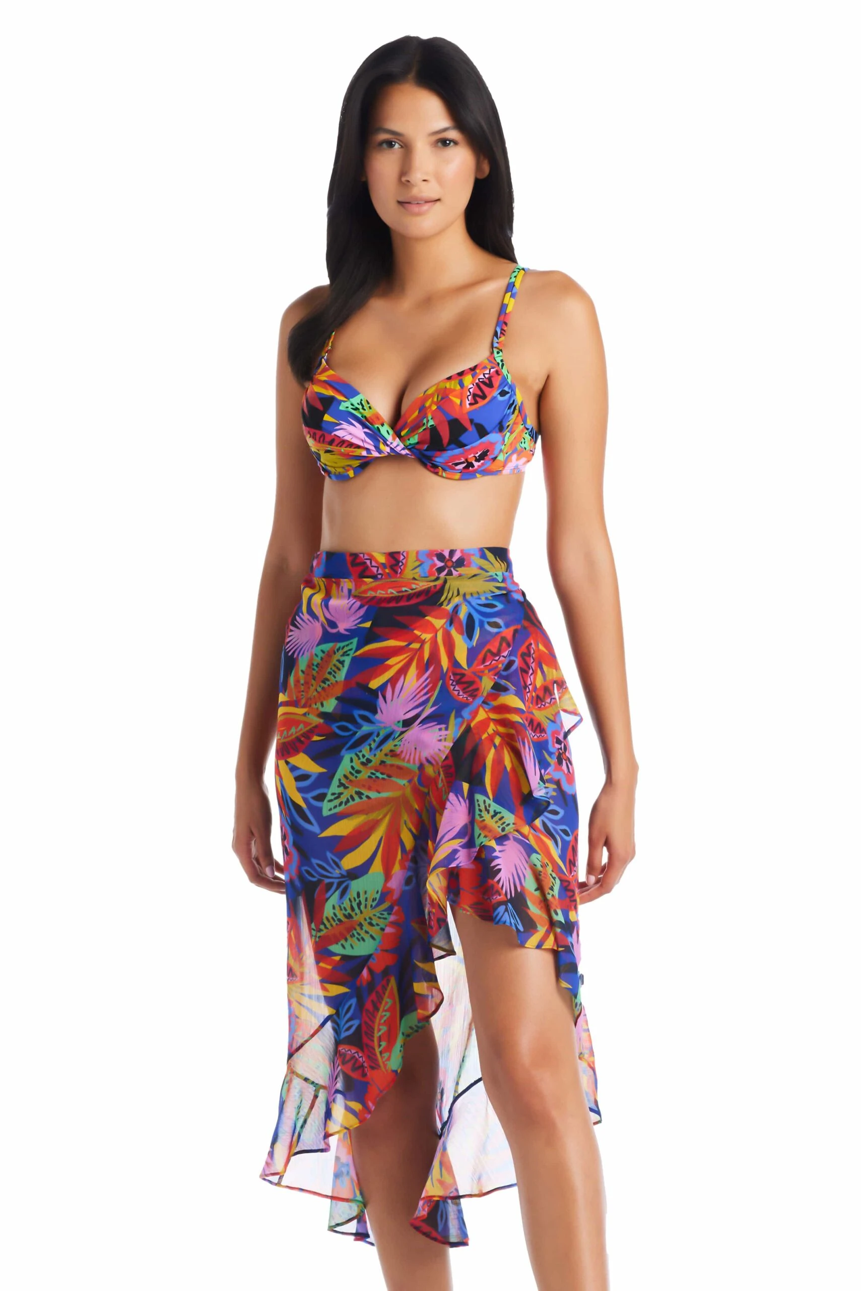 The side tie pareo cover-up from our Night Safari collection is perfect for layering over bikini bottoms or even one-piece suits.