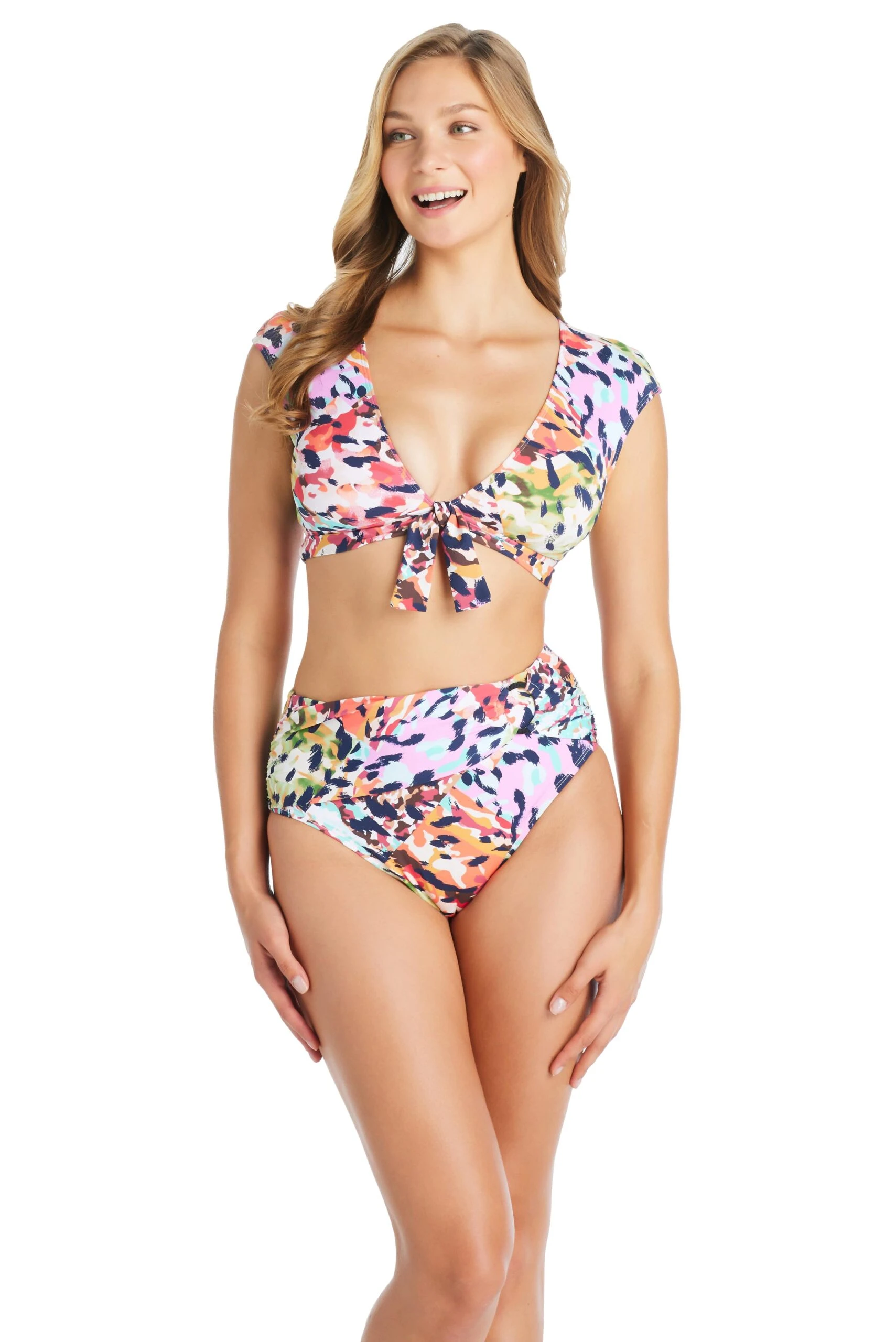 The Party Animal draped bikini bottom offers a higher waist with more coverage.