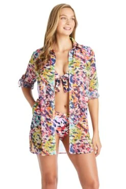 The short shirt beach cover-up from our Party Animal collection offers a versatile option for throwing over your favorite swimsuit